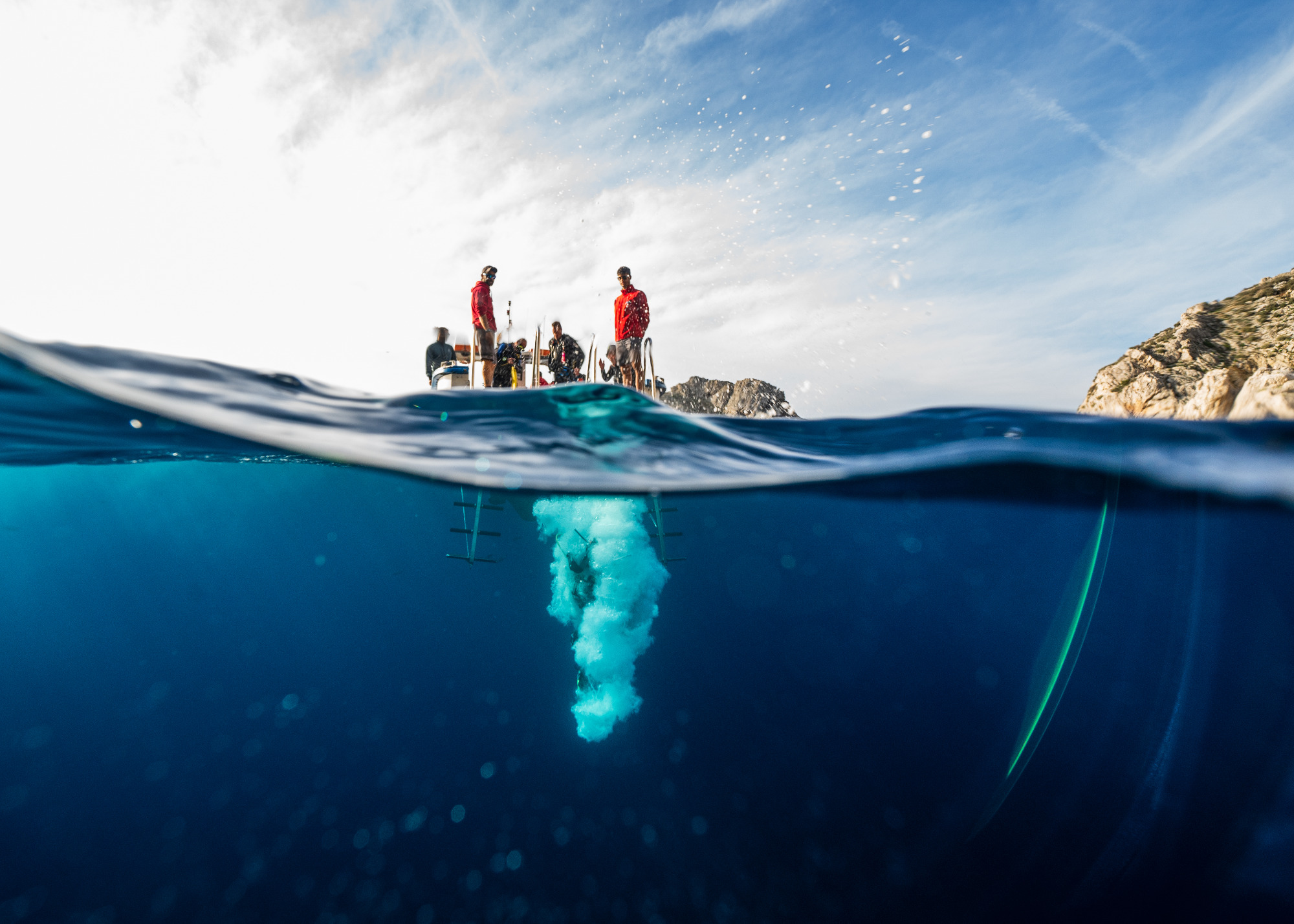 Mobulas, die plötzlich aus dem Blau auftauchen, und riesige Barracuda-Schwärme. Dazu spektakuläre Bootsausfahrten und gemeinsame Abende im Hafen – inklusive legendärer Paella und frischem Thunfisch.